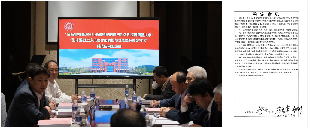 11月8日,由青島理工大學、青島中邦新材料科技有限公司、煙臺大學共同完成的“泡沫混凝土多尺度界面調控與性能提升關鍵技術”項目,在青島組織鑒定。鑒定委員會專家組由中國工程院院士繆昌文教授、澳門科技大學李宗津教授、西安建筑科技大學牛荻濤教授、倫敦大學學院白云教授、青島農業大學李秋義教授、交通運輸部公路科學研究院傅宇方研究員以及中冶建筑研究總院有限公司郝挺宇高工7位資深專家組成。鑒定會由青島理工大學科技處處長劉俊偉主持。